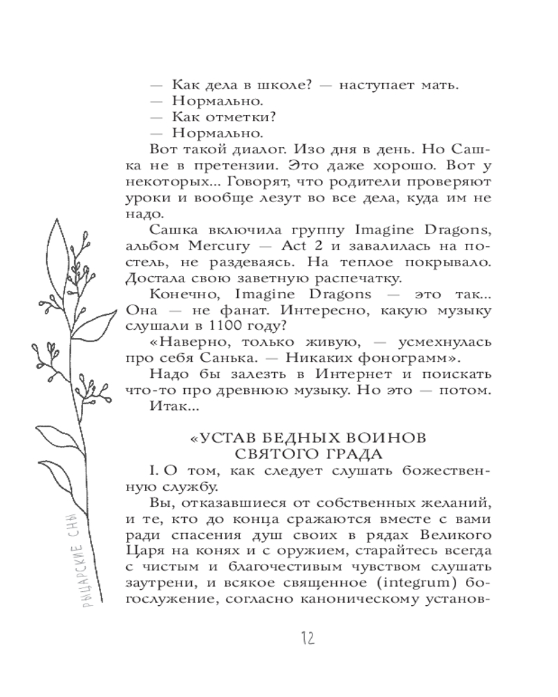 Серия: Мой первый роман Александра влюбляется в Андрея и совсем теряет голову. Андрей — второкурсник Финансовой академии, а также один из представителей современных рыцарей-тамплиеров, а еще Андрей преподает в секции «Фехтование на мечах и историческая реконструкция». Сашка с головой погружается в историю рыцарей-тамплиеров и, конечно, посещает эту секцию, ведь именно там у нее есть возможность увидеть его! Со временем девочка понимает, что не все так просто и Андрей не совсем обычный инструктор по фехтованию... Читайте об этом в повести «Рыцарские сны» Татьяны Шипошиной. |