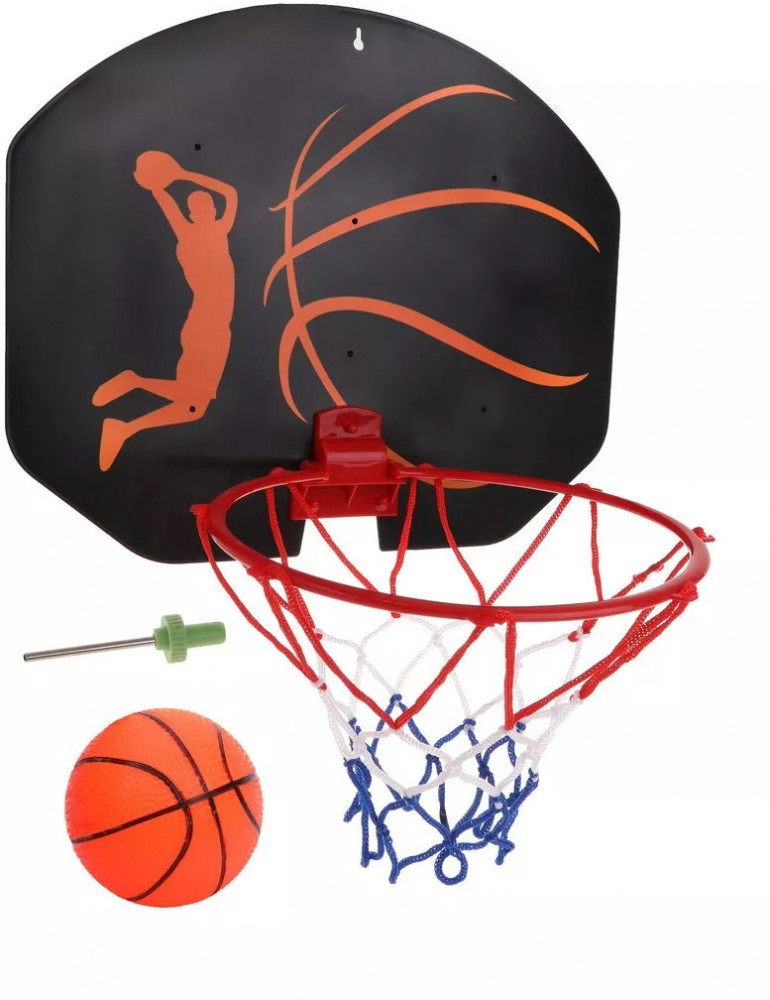 Набор для игры в баскетбол включает пластиковый щит с кольцом и сеткой, мяч и металлическую иглу. В верхней части щита есть отверстие для подвешивания (крепежный элемент не входит в комплект. Щит можно установить в любом удобном месте: дома или на улице в условиях хорошей погоды, а также с учетом нужной высоты.