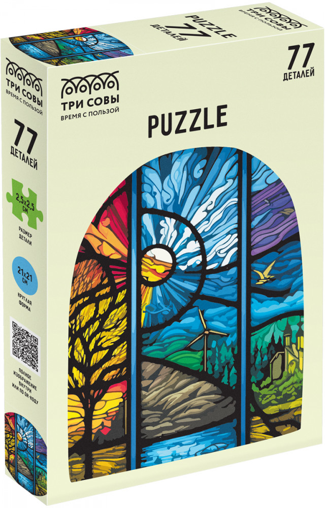Пазл «Витраж» из 77 элементов станет отличным способом весело провести вечер. Картинка имеет круглую форму. |