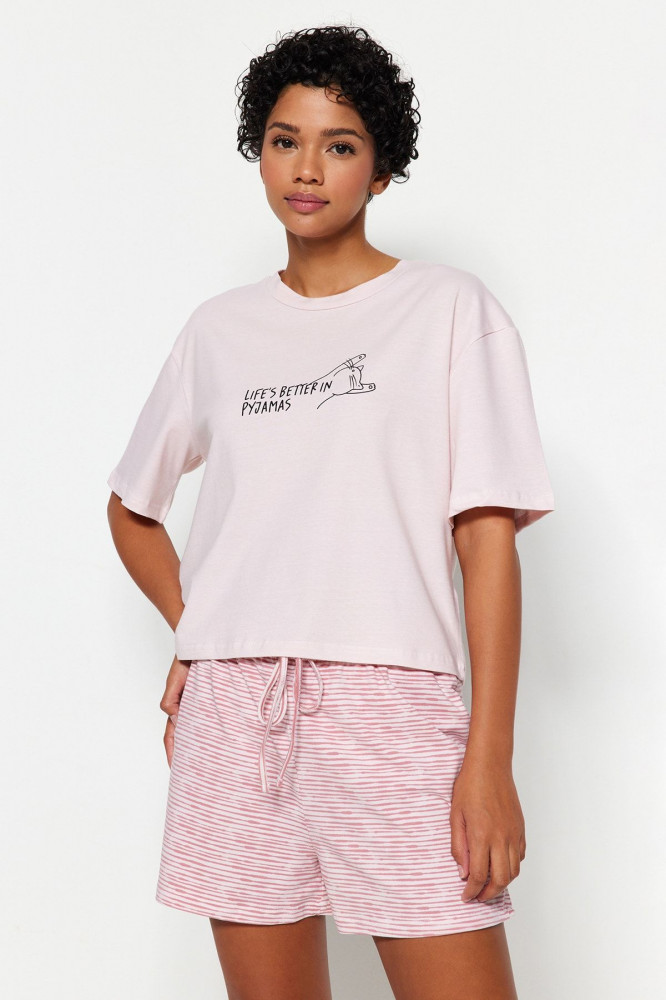Информация о модели: Размеры модели: Рост: 176 см (5'9"), Обхват груди: 81 см (31 дюйм), Обхват талии: 61 см (24 дюйма), обхват бедер: 91 см (35 дюймов); Изделие на манекене имеет размер S / 36 / 8; ; Состав материала: 95% хлопок, 5% эластан; Тип ткани: трикотаж; Изделие состоит из 2 частей: верхней и нижней. Пожалуйста, следуйте приведенным ниже инструкциям по стирке, чтобы вы могли использовать ваше изделие в течение более длительного времени и должным образом ухаживать за ним. ; Цвета могут отличаться на студийных снимках из-за разницы в освещении.
