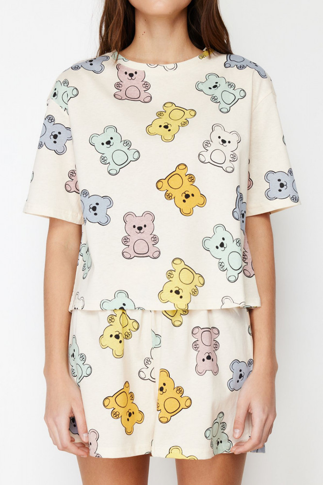 Информация о модели: Размеры модели: Рост: 176 см (5'9"), Обхват груди: 82 см (32 дюйма), Обхват талии: 61 см (24 дюйма), Обхват бедер: 89 см (35 дюймов); Изделие на манекене имеет размер S / 36 / 8; Материал: 100% хлопок; Тип ткани: трикотажная; Изделие состоит из 2 частей: верхней и нижней. Пожалуйста, следуйте приведенным ниже инструкциям по стирке, чтобы вы могли использовать ваше изделие в течение более длительного времени и должным образом ухаживать за ним. ; Цвета могут отличаться на студийных снимках из-за разницы в освещении.