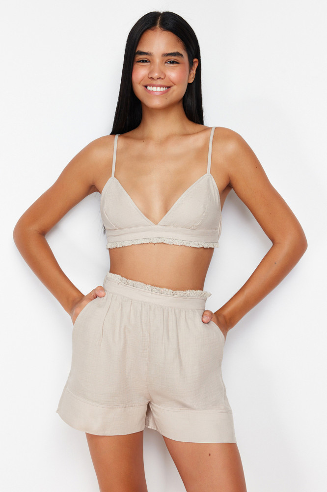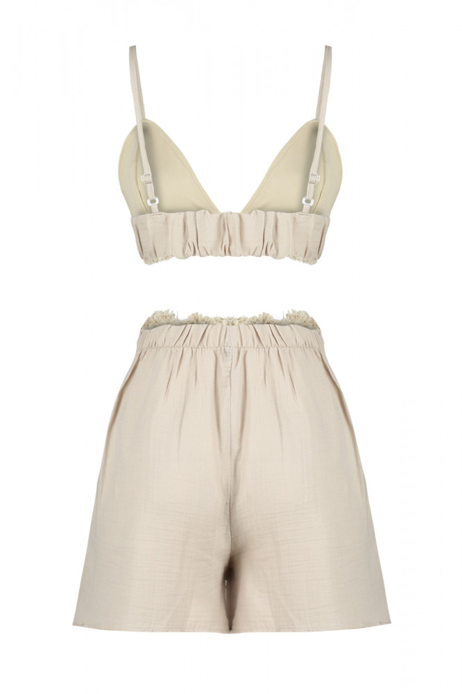 Информация о модели: Размеры модели: Рост: 178 см (5'10 дюймов), Обхват груди: 86 см (33 дюйма), Обхват талии: 64 см (25 дюймов) Бедра: 95 см (37 дюймов); Размер изделия на манекене S / 36 / 8.; Состав материала: 100% хлопок; Тип ткани: тканая; Изделие состоит из 2 частей: верхней и нижней. Изготовлен из хлопка и текстурированного мягкого муслина. Изделие состоит из бюстгальтера и шорт. Благодаря своему естественному минималистичному внешнему виду его можно использовать в разных местах. Изделие обеспечивает комфортное использование благодаря ткани, не содержащей железа. Оно придает элегантности вашей комбинации благодаря своему гофрированному виду. Пожалуйста, следуйте приведенным ниже инструкциям по стирке, чтобы вы могли использовать ваше изделие в течение более длительного времени и должным образом ухаживать за ним. ; Цвета могут отличаться на студийных снимках из-за разницы в освещении.
