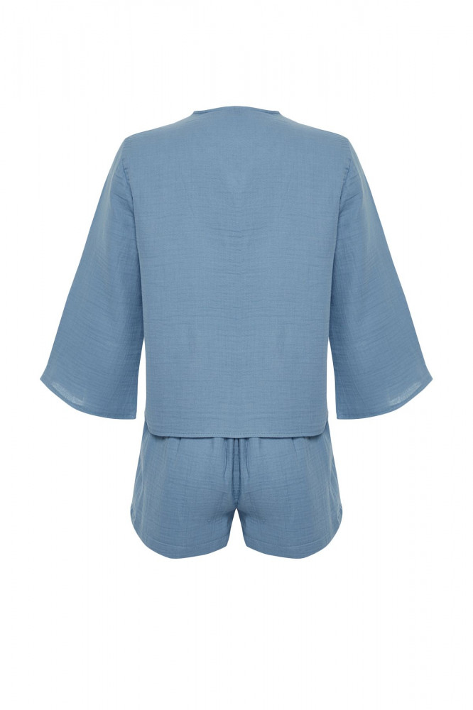 Информация о модели: Размеры модели: Рост: 175 см (5'9') Бюст: 82 см (32 дюйма), талия: 60 см (23 дюйма), бедра: 91 см (35 дюймов); Изделие на манекене имеет размер S / 36 / 8; Материал: 100% хлопок; Тип ткани: тканая; Длина модели спереди: 56,0 см; Изделие состоит из 2 частей: верхней и нижней. Изготовлен из хлопка и текстурированного мягкого муслина. Изделие включает в себя одну пижамную рубашку и один пижамный низ. Благодаря своему естественному и минималистичному внешнему виду, его можно использовать в разных местах. Благодаря ткани, не требующей глажки, изделие обеспечивает комфортное использование. Пожалуйста, следуйте приведенным ниже инструкциям по стирке, чтобы вы могли использовать изделие в течение более длительного времени и должным образом за ним ухаживать. ; Цвета могут отличаться на студийных снимках из-за разницы в освещении.