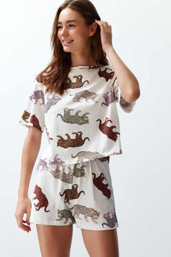 Информация о модели: Размеры модели: Рост: 179 см (5'10"), бюст: 85 см (33 дюйма), талия: 60 см (23 дюйма), бедра: 90 см (35 дюймов); Размер изделия на манекене S / 36 / 8.; Материал: 100% хлопок; Тип ткани: трикотажная; Изделие состоит из 2 частей: верхней и нижней. Мужские и женские модели продаются отдельно. Цена указана за пижамный комплект. Пожалуйста, следуйте приведенным ниже инструкциям по стирке, чтобы вы могли использовать ваше изделие в течение более длительного времени и должным образом за ним ухаживать. ; Цвета могут отличаться на студийных снимках из-за разницы в освещении.