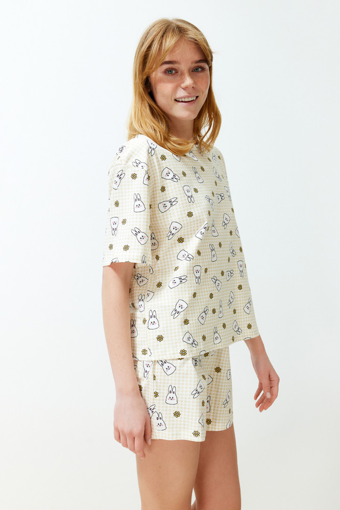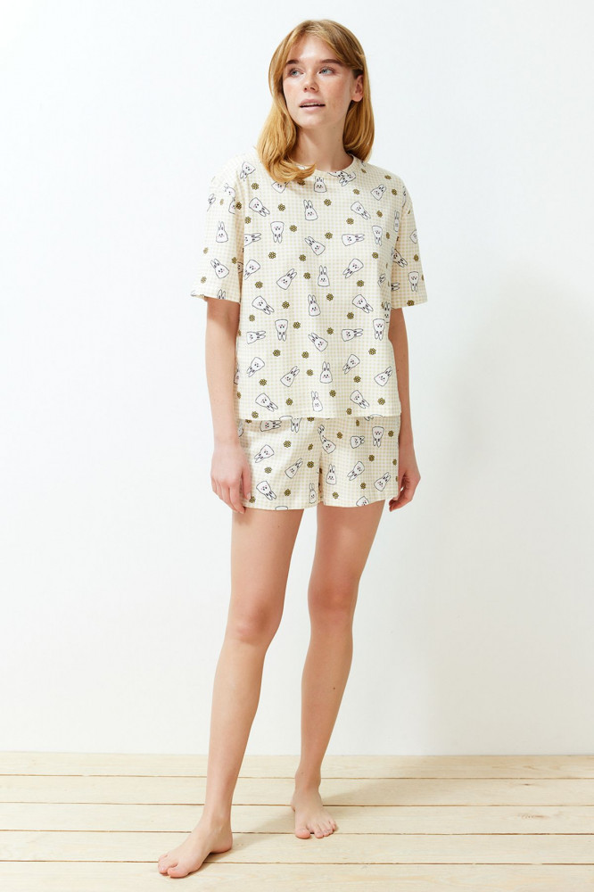 Информация о модели: Размеры модели: Рост: 175 см (5'9"), Обхват груди: 80,5 см (31 дюйм), Обхват талии: 60 см (23 дюйма), обхват бедер: 88 см (34 дюйма); Изделие на манекене имеет размер S / 36 / 8; Материал: 100% хлопок; Тип ткани: трикотажная; Изделие состоит из 2 частей: верхней и нижней. Пожалуйста, следуйте приведенным ниже инструкциям по стирке, чтобы вы могли использовать ваше изделие в течение более длительного времени и должным образом ухаживать за ним. ; Цвета могут отличаться на студийных снимках из-за разницы в освещении.
