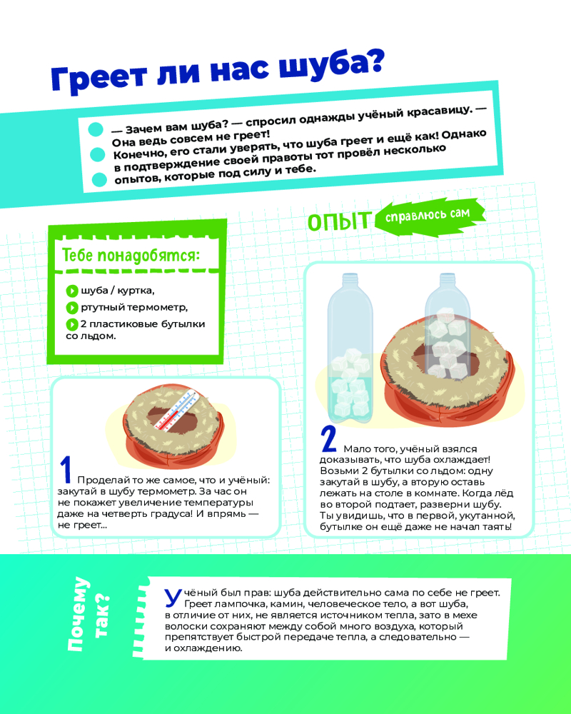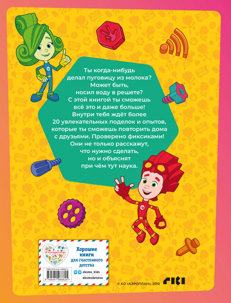 Серия: Фиксики. Книги для маленьких фанатов Домашняя лаборатория для опытов и экспериментов под руководством фиксиков! Они расскажут про многие интересные явления: греет ли нас шуба, как сделать пуговицу из молока, может ли гореть огонь под водой... Более 20 пошаговых опытов с яркими картинками и фактами от фиксиков! Опыты и эксперименты не дадут заскучать детям 7-12 лет. |