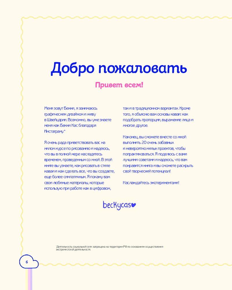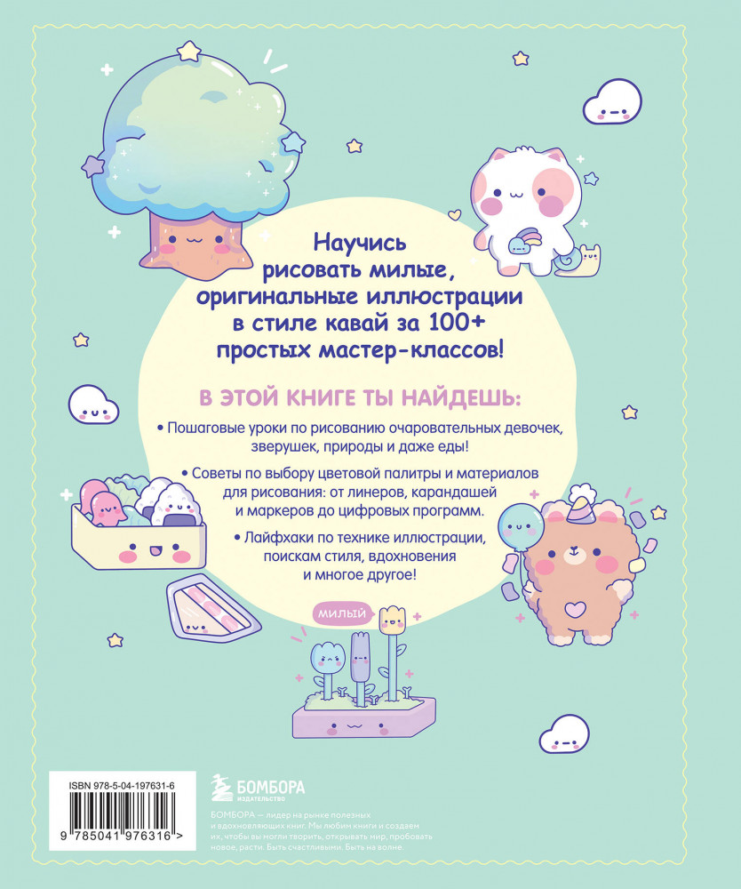 Серия: Начни рисовать. Лучшие книги для начинающих Перед тобой — самый кавайный курс рисования! Научись рисовать милых персонажей из всего на свете: животные, русалки, облачка и деревья и даже вкусняшки. Абсолютно все вокруг можно стилизовать под популярную японскую эстетику кавай. Автор этой книги, популярная немецкая художница и иллюстратор Бекки Кастанеда (beckycas), научит вас рисовать за 100 простых пошаговых уроков. В курс входят подробные инструкции, вспомогательные материалы и разборы используемых техник. Совершенно не важно, рисуете вы на бумаге или планшете. Самоучитель универсален и научит любого рисовать милые картинки! Возьми свой любимый набор пастельных, неоновых или блестящих красок или маркеров и дай волю воображению! Научись рисовать милых лягушечек, кошкодевочек, елочки и даже тортики с сэндвичами! |
