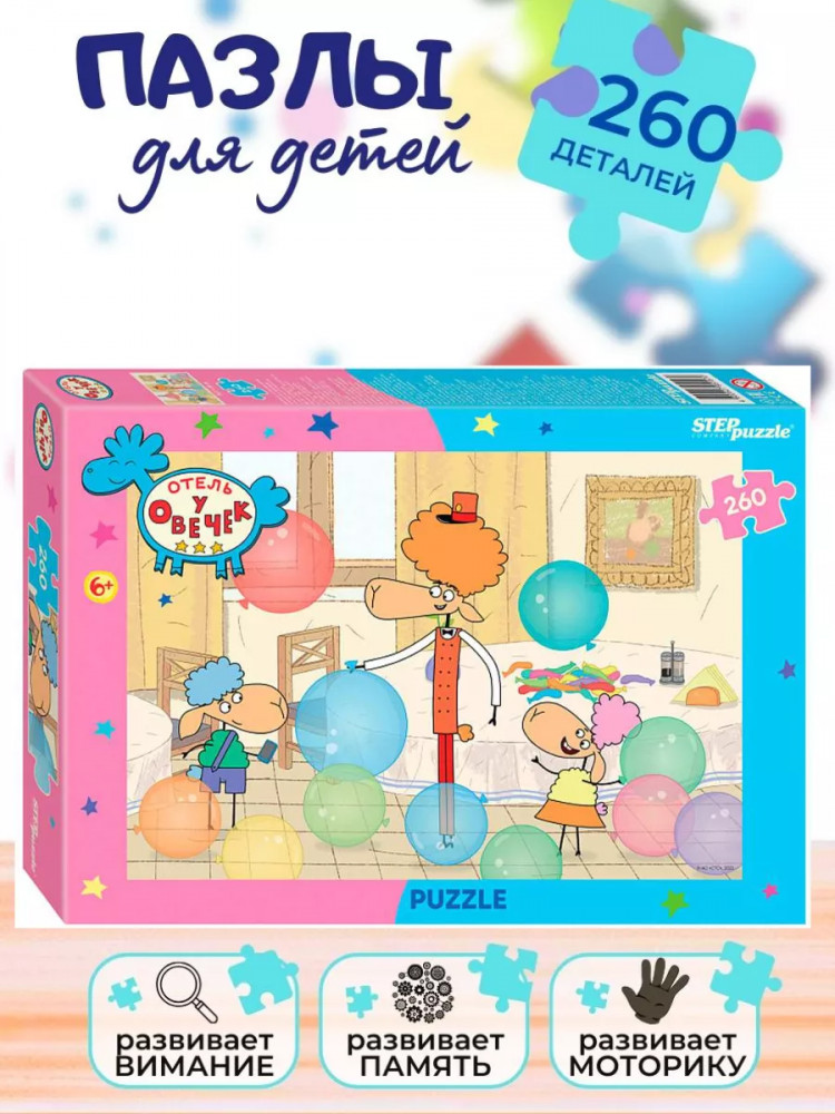 Step Puzzle Пазл «Отель у Овечек»В данный момент этот товар отсутствует в продаже. Возможно, у нас найдется аналогичный или похожий товар здесь. Пазл «Отель у Овечек» по мотивам одноименного мультсериала. Сборка пазла прекрасно развивает образное и логическое мышление, мелкую моторику, умение видеть часть и целое и сопоставлять их, также способствует развитию усидчивости, концентрации внимания, памяти. |