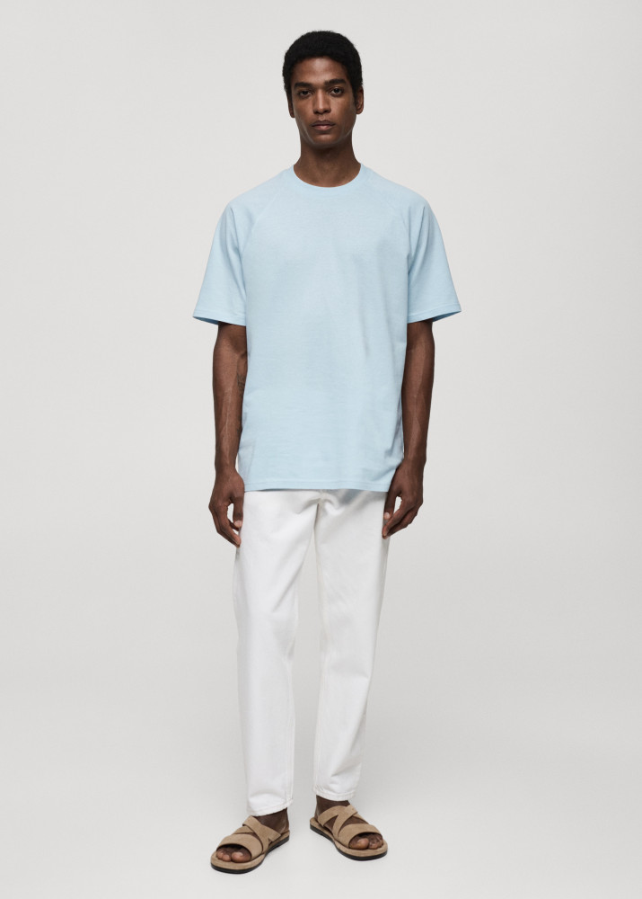 Relaxed fit. Изделие выполнено из хлопка. Круглый вырез горловины. Короткие рукава. Прямая линия низа со строчками.
