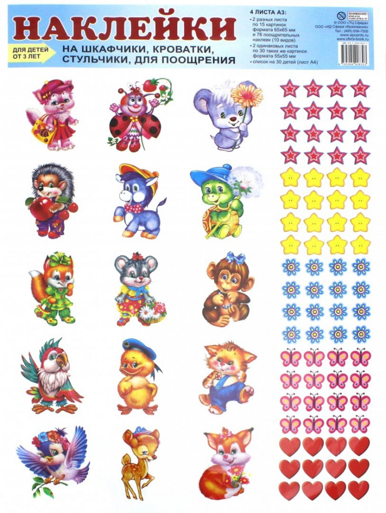 Наклейки для шкафчиков, кроваток, стульчиков и поощрения. Для детей от 3 лет