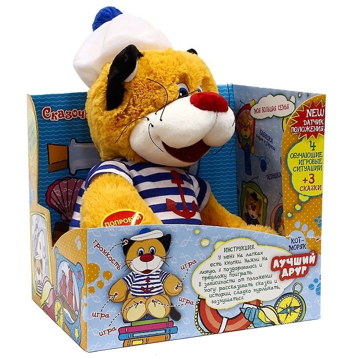 В данный момент этот товар отсутствует в продаже. Возможно, у нас найдется аналогичный или похожий товар здесь. Серия: Интерактивные сказочники С котом-усатым моряком можно узнать много интересного. Для начала, как все вежливые коты, он поздоровается и предложит поиграть или рассказать сказку.