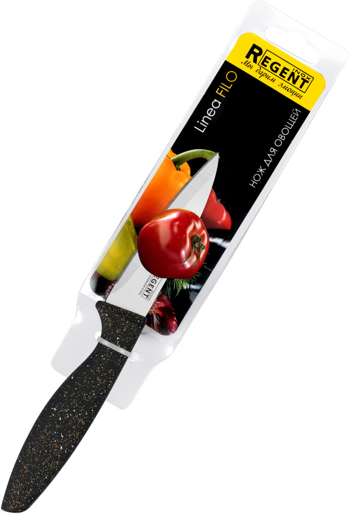 Regent Нож для овощей «Filo»В данный момент этот товар отсутствует в продаже. Возможно, у нас найдется аналогичный или похожий товар здесь. Серия: Filo Нож для овощей Filo имеет компактный размер, продолговатую форму короткий прямой клинок. Используйте его для очистки овощей, снятия кожуры с фруктов и нарезки на дольки. Бархатистое покрытие ручек Soft-touch отличается мягкостью, но при этом достаточно прочное, не склонно к образованию трещин и сколов при ударах, удобно ложится в руку и не скользит. Прикоснувшись к нему один раз, вы поймете, что он не похож ни на какой другой и не захотите с ним расставаться! Клинок ножа Filo изготовлен из нержавеющей стали марки 3Cr13. Клинки из этой стали отличаются хорошей коррозийной устойчивостью, обладают высокой прочностью. Режущая кромка изделий из данной стали способна долгое время сохранять свою остроту, легко поддаются заточке, привести их в первоначальную форму, даже после активной эксплуатации, можно при помощи простого точильного камня или мусата. |