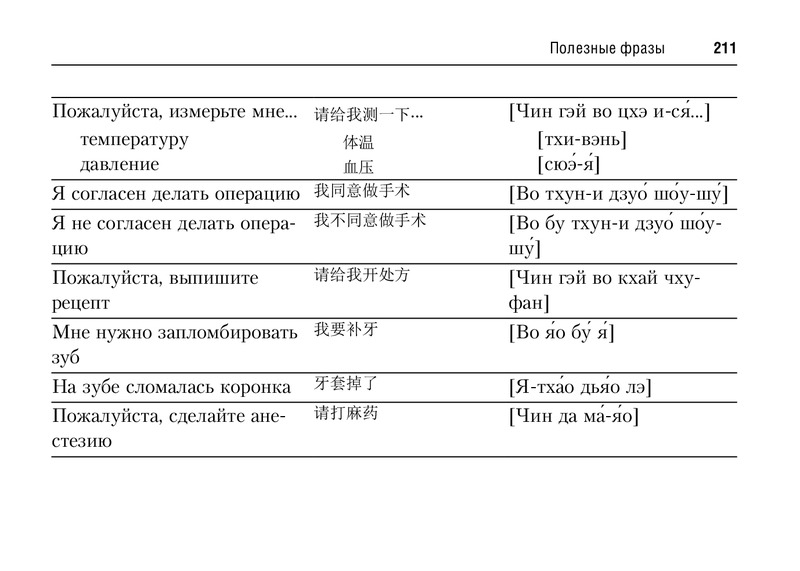 Разговорник составлен опытными путешественниками, гидами-переводчиками, при участии носителя китайского языка. Он включает в себя все основные фразы, необходимые в различных ситуациях за границей. Вы легко сможете объясниться в отеле, в магазине, в ресторане, при заказе билетов на поезд и самолет, в беседе с врачом, полицейским и так далее. Кроме того, в разговорник включены полезные сведения для туристов и простые фразы для общения. Для вашего удобства разговорные фразы снабжены русской транскрипцией. Путешествуйте и общайтесь с удовольствием!