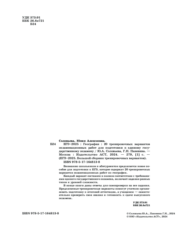 ЕГЭ-2025. География. 20 тренировочных вариантов экзаменационных работ для подготовки к единому государственному экзаменуГалина Николаевна Паневина, Юлия Алексеевна Соловьева