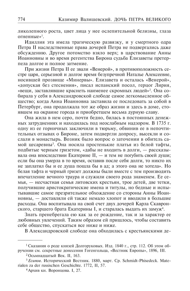 Петр Великий. Царство женщин. Дочь Петра Великого. Полное издание в одном томеКазимир Феликсович Валишевский В данный момент этот товар отсутствует в продаже. Возможно, у нас найдется аналогичный или похожий товар здесь. Серия: Полное издание в одном томе Казимир Валишевский (1849 — 1935) — известный польский историк, публицист и писатель, большую часть жизни трудившийся во Франции; отмечен наградой французской Академии наук «за большой вклад в современную историографию». Более 30 лет он изучал историю России XVI — XIX веков. Валишевский работал в архивах Петербурга, Парижа, Лондона, Берлина и Вены. Результатом этой работы стала серия книг «Происхождение современной России», вышедшая во Франции в период с 1892 по 1925 год. |