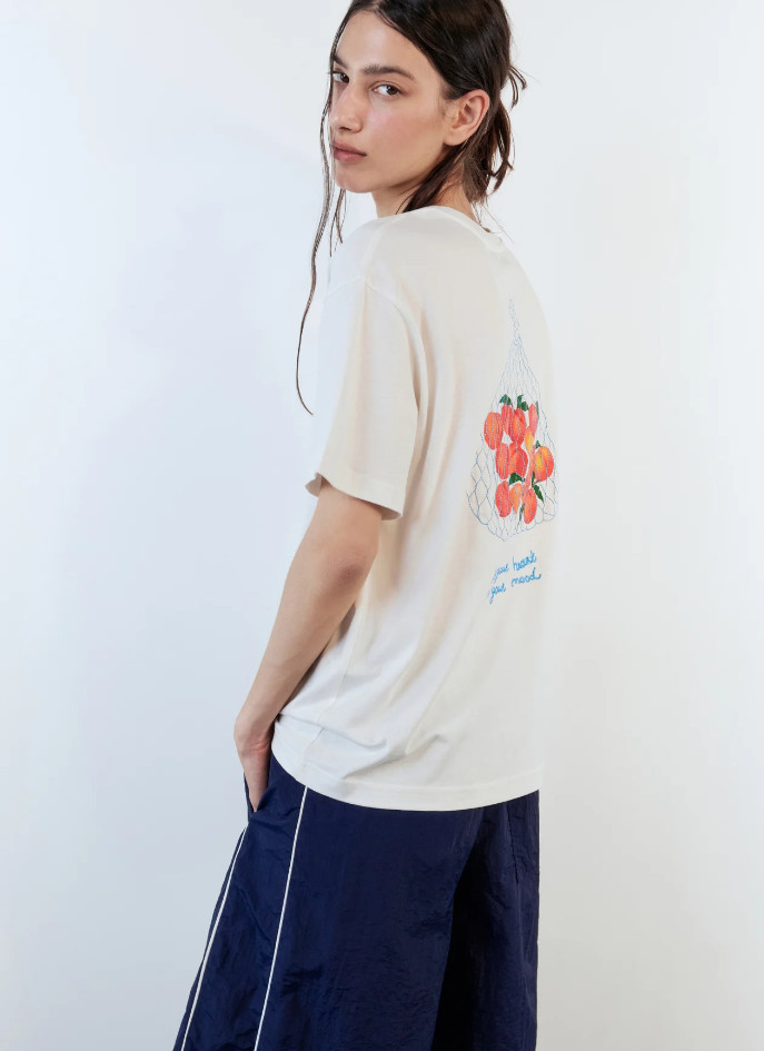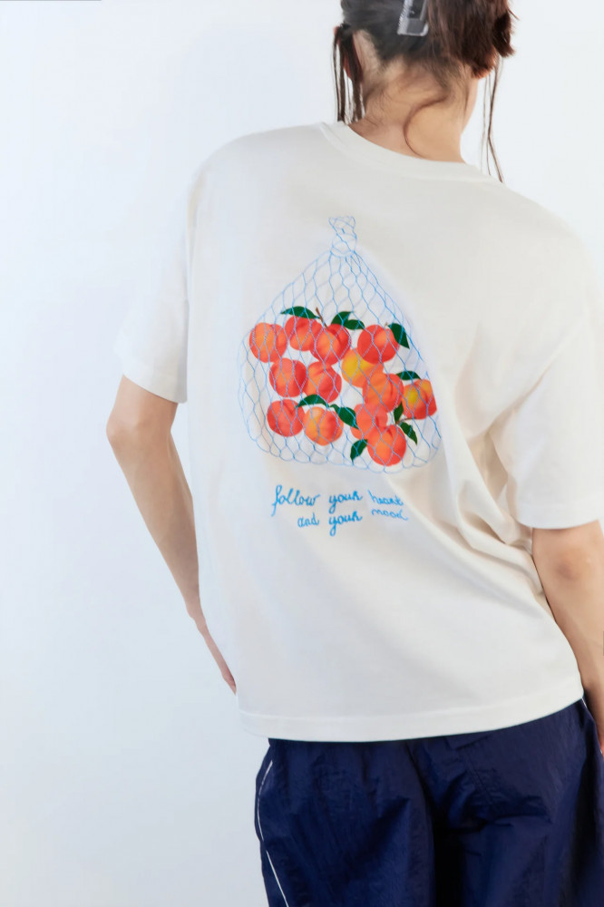 Основа основ любого гардероба: идеальная футболка из хлопка с принтом на любой случай жизни. универсальная и суперудобная хлопковая футболка с ярким фруктовым принтом под любое настроение подойдет для занятий спортом, йогой, повседневных луков и просто отдыха дома. Сочетай ее со спортивным, классическим или преппи-низом. Создай расслабленный образ с широкими штанами или более женственный с юбками и платьями. Обязательно попробуй удобное трендовое сочетание с бриджами. носи ее отдельно или используй в качестве основы для многослойных луков .