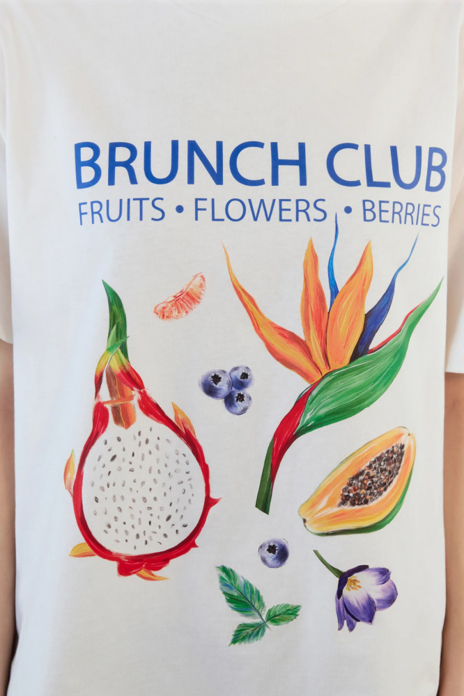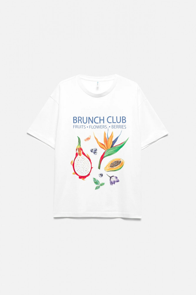 Основа основ любого гардероба: идеальная футболка из хлопка с принтом на любой случай жизни. универсальная и суперудобная хлопковая футболка с ярким фруктовым принтом под любое настроение подойдет для занятий спортом, йогой, повседневных луков и просто отдыха дома. Сочетай ее со спортивным, классическим или преппи-низом. Создай расслабленный образ с широкими штанами или более женственный с юбками и платьями. Обязательно попробуй удобное трендовое сочетание с бриджами. носи ее отдельно или используй в качестве основы для многослойных луков .