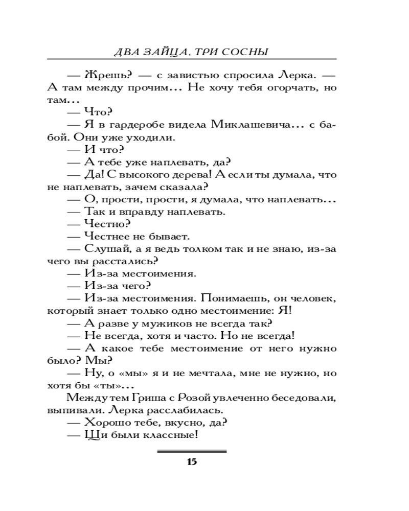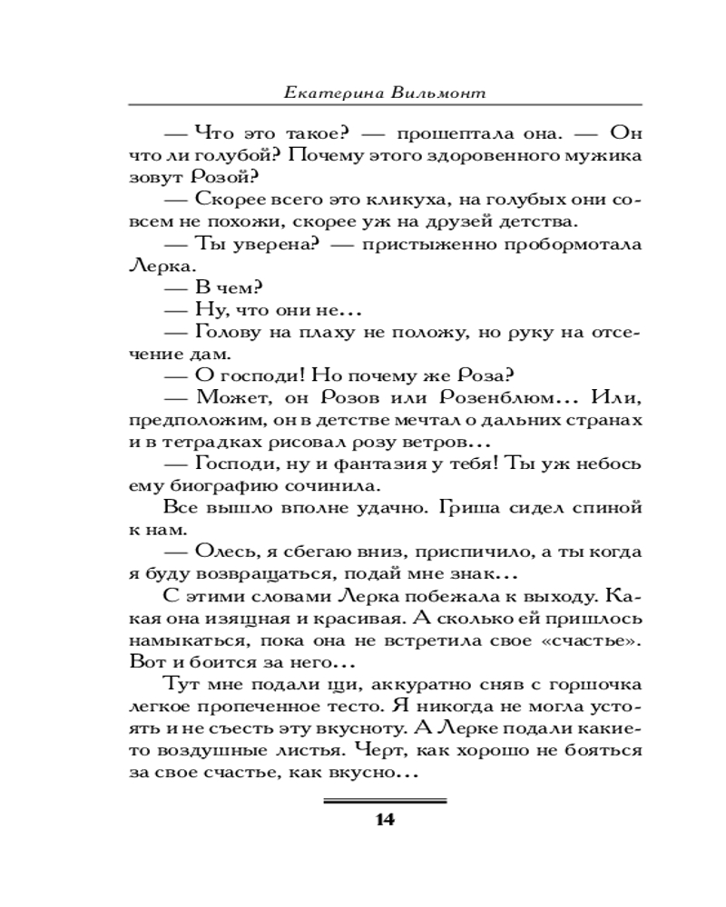Серия: Гормон счастья. Романы Екатерины Вильмонт Олеся Миклашевская, архитектор по образованию и писатель женских романов в силу жизненных обстоятельств, недолго думая решила проверить на себе расхожую истину: «Суженого конем не объедешь». Что может быть проще? А если претендентов двое... И как не свалиться в банальность о погоне за двумя зайцами и не заплутать в трех соснах? |
