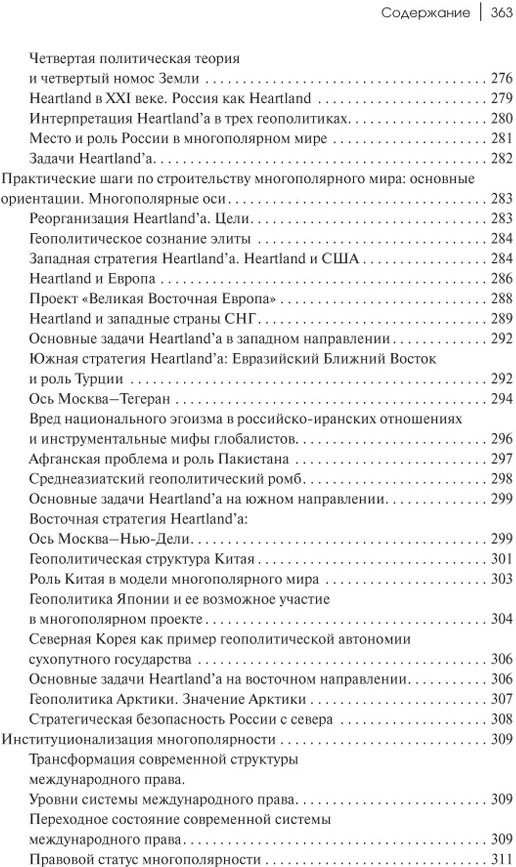 • геополитическая часть, которая строится по принципу глубинной геополитики, где философский и культурологический, цивилизационный анализ дополняет и обосновывает политико-стратегические аспекты. Геополитика сама по себе оперирует с очень высоким уровнем синтеза, что проявляется в чрезвычайно сложной и многоуровневой природе геополитических концептов, включающих в себя сразу тмного слоев — географию, историю, политическую науку, экономику, культуру, язык, демографию, климат, этнос, религию и т. д.