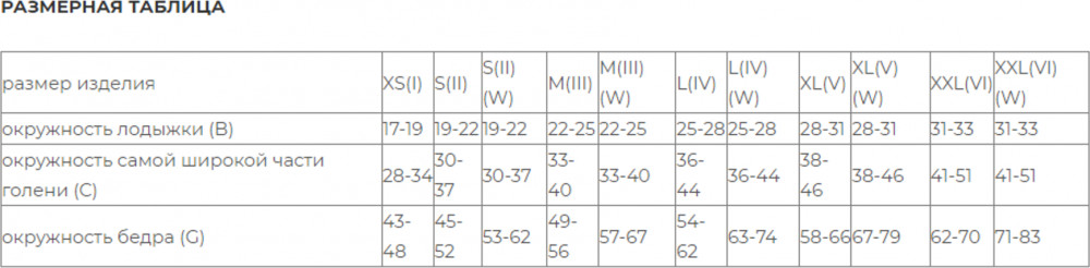 Особенности: 1 класс компрессии 18 — 21 мм.рт.ст.; профилактика образования венозных тромбозов до, во время и после операций, во время родов; профилактика нарушения венозного оттока у лежачих больных 2 класс компрессии 23 — 32 мм.рт.ст. профилактика тромбоэмболических осложнений, после флебосклерозирования и хирургического вмешательства на венах нижних конечностей патология вен нижних конечностей у малоподвижных пациентов.