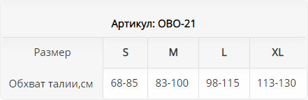 • если обхват талии пользователя находится на пересечении двух размеров в размерной таблице, рекомендуем выбрать больший размер изделия.