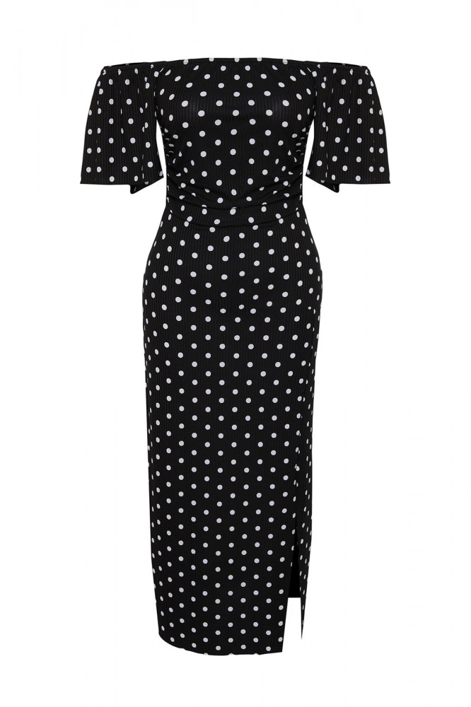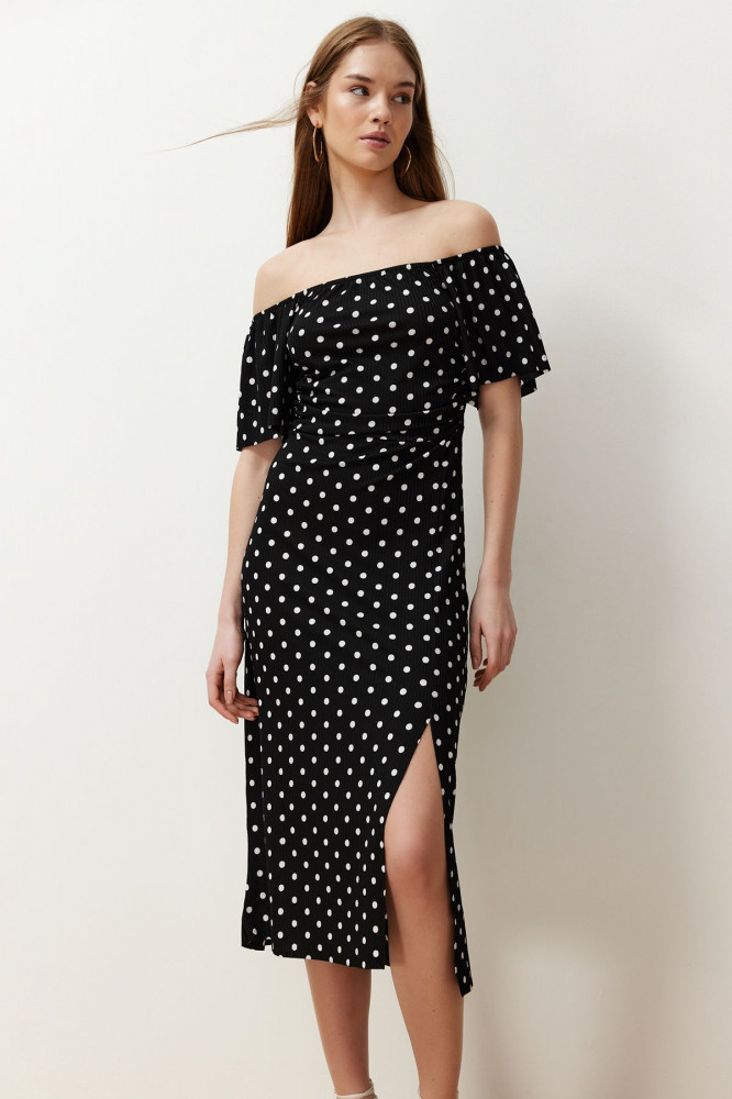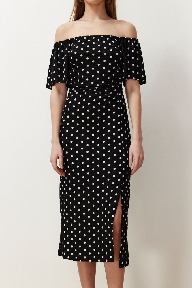 Информация о модели: Размеры модели: Рост: 177 см (5'10"), грудь: 82 см (32 дюйма), талия: 59 см (23 дюйма), бедра: 88 см (34 дюйма); Размер изделия на модели S / 36 / 8. ; ; Состав материала: 96% полиэстер, 4% эластан; Тип ткани: трикотаж; Длина модели спереди: 135,0 см; Для более длительного использования изделия и надлежащего ухода за ним, пожалуйста, следуйте приведенным ниже инструкциям по стирке. Это удобный узор, закрывающий верхнюю часть тела и открывающийся по форме к юбке. При студийной съемке цвета могут отличаться из-за разницы в освещении.