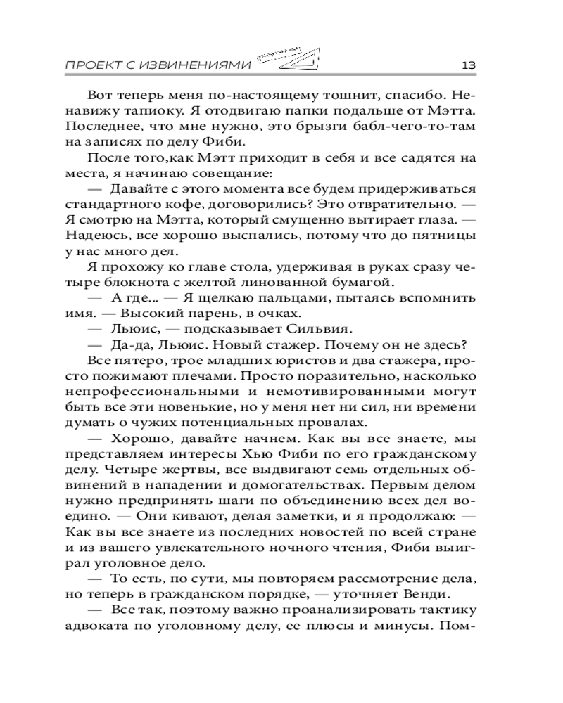 «Проект с извинениями» прекрасно сочетает в себе ироничные дерзкие моменты и необходимость извиниться за серьезную ошибку... Это идеальная книга для книжных клубов», — Midwest Book Review.