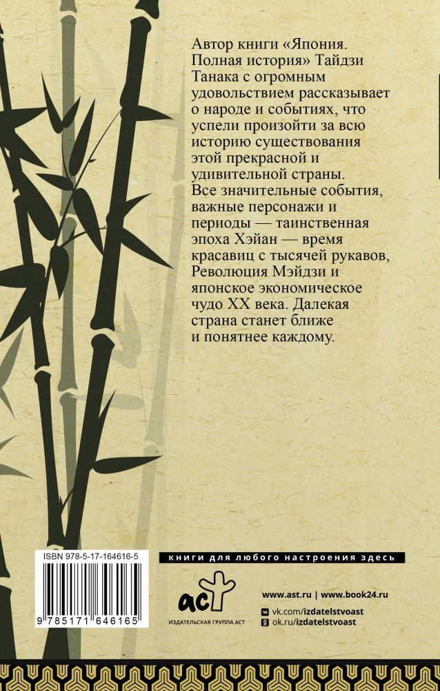 Япония. Полная историяВ данный момент этот товар отсутствует в продаже. Возможно, у нас найдется аналогичный или похожий товар здесь. Серия: Полная история страны Автор книги «Япония. Полная история страны» Тайдзи Танака с огромным удовольствием рассказывает о народе и событиях, что успели произойти за всю историю существования этой прекрасной и удивительной страны. Все значительные события, важные персонажи и периоды — таинственная эпоха Хэйан — время красавиц в тысячей рукавов, революция Мейдзи и японское экономическое чудо XX века. Далекая страна станет ближе и понятнее каждому. |