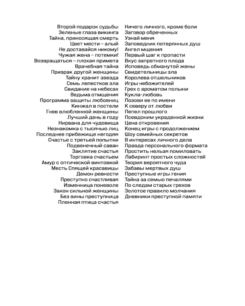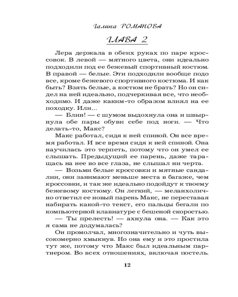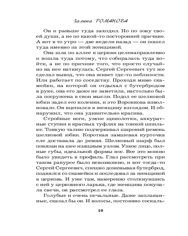 Сложно было представить, что авантюрная идея изложить на бумаге придуманную криминальную историю внезапно перерастет во что-то серьезное и станет смыслом жизни. Именно с этого начался творческий путь российской писательницы Галины Романовой. И сейчас она по праву считается подлинным знатоком чувств и отношений. Суммарный тираж книг Галины Романовой превысил 3 миллиона экземпляров. |