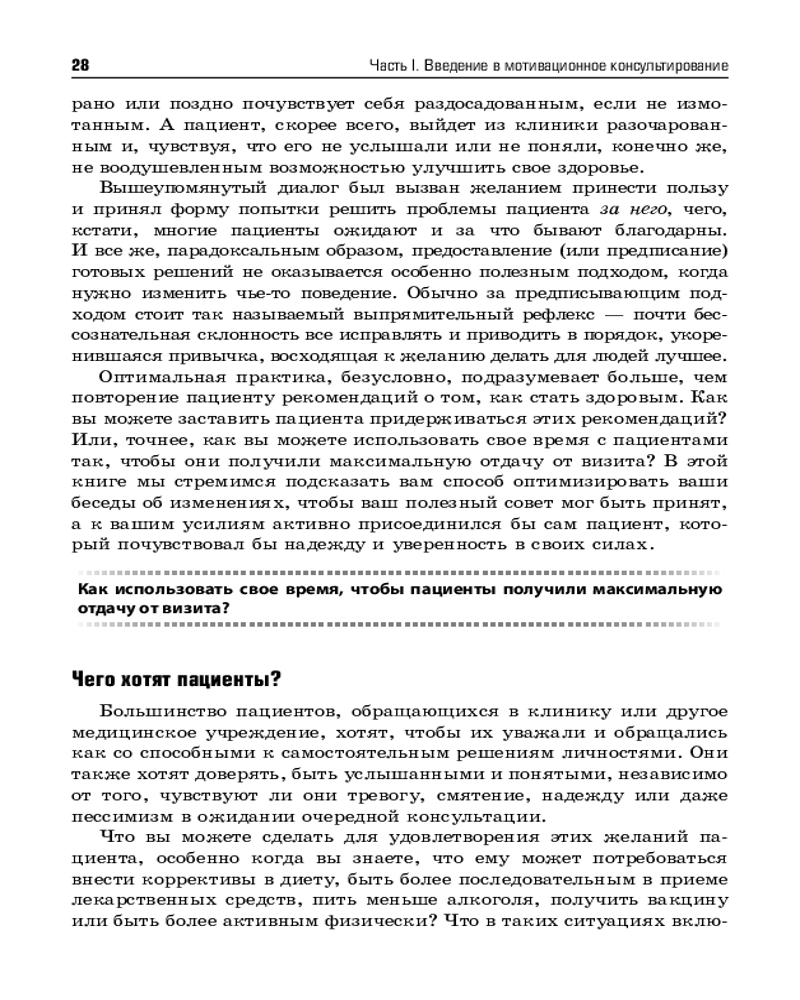 Мотивационное консультирование в здравоохранении. Как помочь пациентам изменитьсяУильям Р. Миллер, Cтивен Роллник, Кристофер С. Батлер В данный момент этот товар отсутствует в продаже. Возможно, у нас найдется аналогичный или похожий товар здесь. Данная книга посвящена важнейшему направлению современной медицины, клинической психологии и организации здравоохранения — мотивационному консультированию, более того — формированию мотивации пациента к изменению своего поведения в целях профилактики и/или преодоления болезни. Современная медицина остро нуждается в развитии данного направления, а врачи, клинические психологи, медицинские работники, руководители здравоохранения и его различных звеньев ощущают острую потребность в знаниях, умениях и навыках в этой области. Современная медицина столкнулась с необходимостью персоноцентричного подхода, в котором учет личности пациента, апелляция к ней являются одной из важнейших составляющих эффективности медицинской помощи. Использование технологий формирования мотивации у пациента к изменению своего поведения, переоценке отношения к своему заболеванию и консолидации ответственных усилий врача и пациента в направлении преодоления болезни является важнейшей профессиональной обязанностью врача, клинического психолога, медицинского работника. |