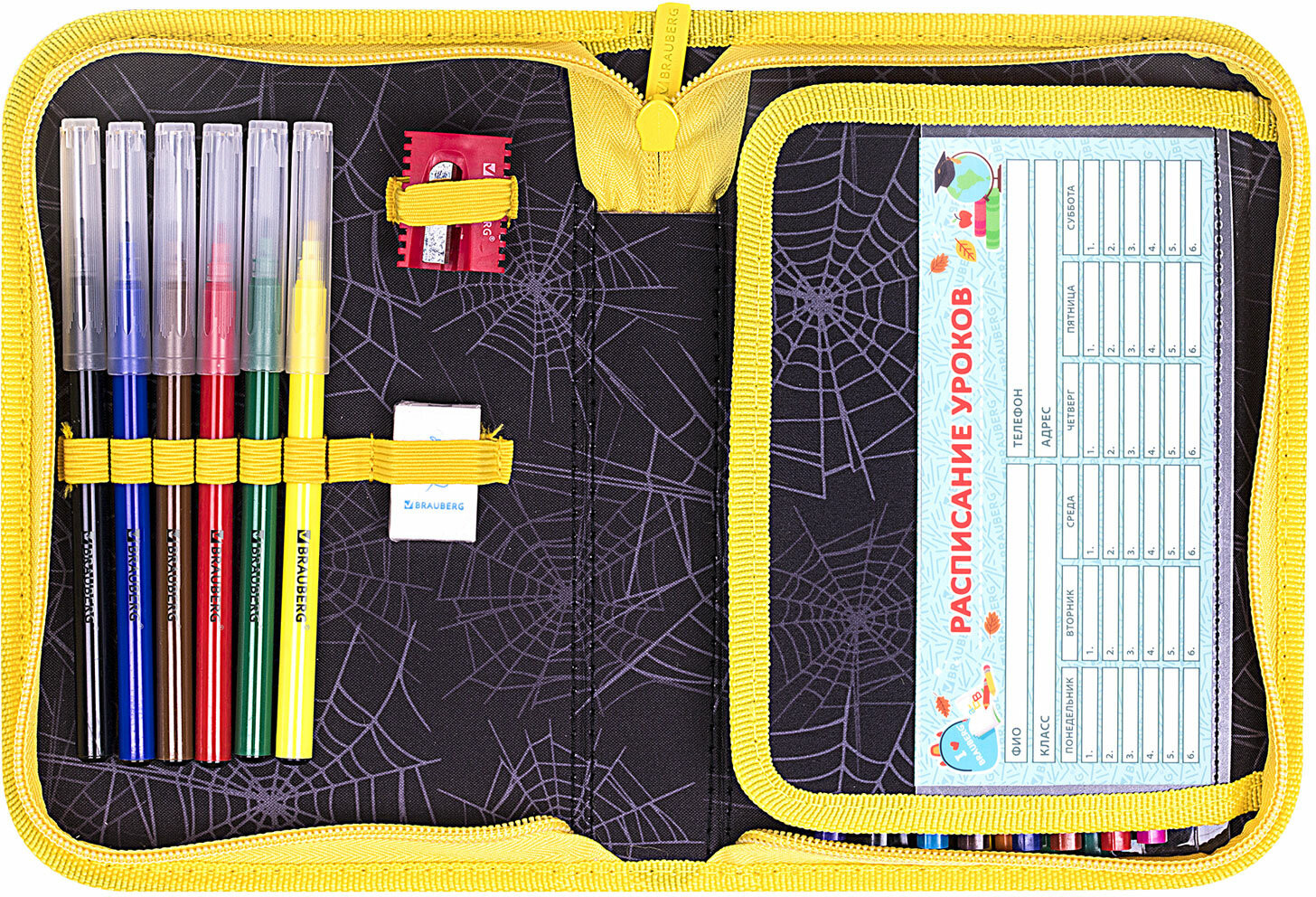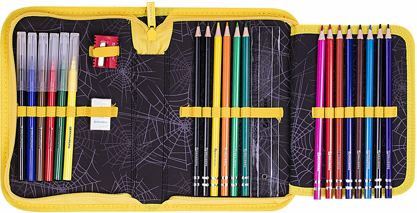 Brauberg Пенал школьный «Venomous spider»В данный момент этот товар отсутствует в продаже. Возможно, у нас найдется аналогичный или похожий товар здесь. Серия: Premium single decker Тканевый пенал стандартного размера с одним отделением и одной откидной планкой. Удобная молния с трех сторон с металлическим бегунком, прочные резинки для предметов. Пенал с наполнением включает 24 предмета. Материал снаружи и внутри — полиэстер с цветной печатью, ярким дизайном. Основа пенала — плотный картон. Такая конструкция отличается износостойкостью и прочностью, поможет защитить канцелярские принадлежности от повреждений. Пенал имеет стандартный размер 21×14 см, что позволяет легко размещать его в ранце или рюкзаке, сумке. |