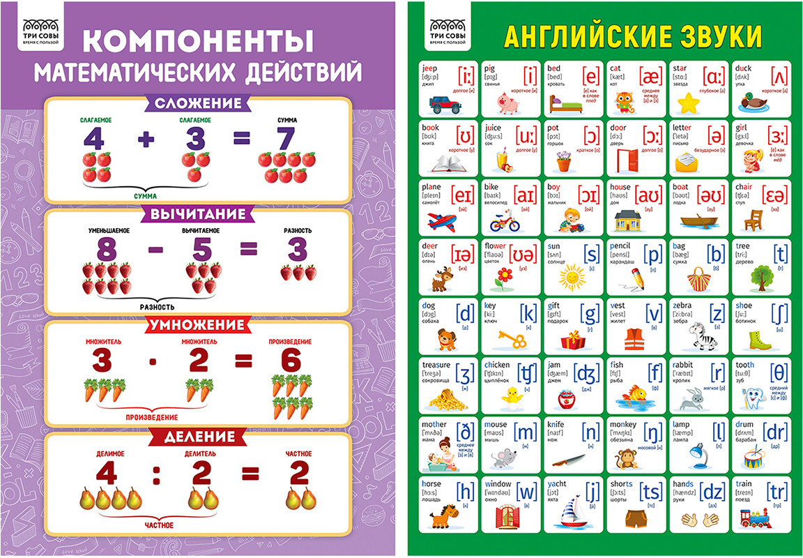 💳 Оплатить за товар можно при получении 🇰🇿 Есть бесплатная доставка по Казахстану 🎁 Копите бонусы с каждой покупки Набор обучающих плакатов бренда «Три совы» — незаменимый помощник для младшего школьника. В данный набор входит 10 основных плаката с информацией, которая необходима перед поступлением в школу: буквы и слоги, падежи, таблица умножения, части речи, разбор слова по составу, звуки русского языка, меры величин, английские звуки, члены предложения и компоненты математических действий. Размер изделий — 210 × 297 мм, формат — А4, материал — плотный картон. Наглядное пособие помогает упорядочить полученные знания и закладывает базу для дальнейшего обучения. Плакаты «Три совы» можно использовать дома и в начальной школе. «Три совы» — время с пользой! |