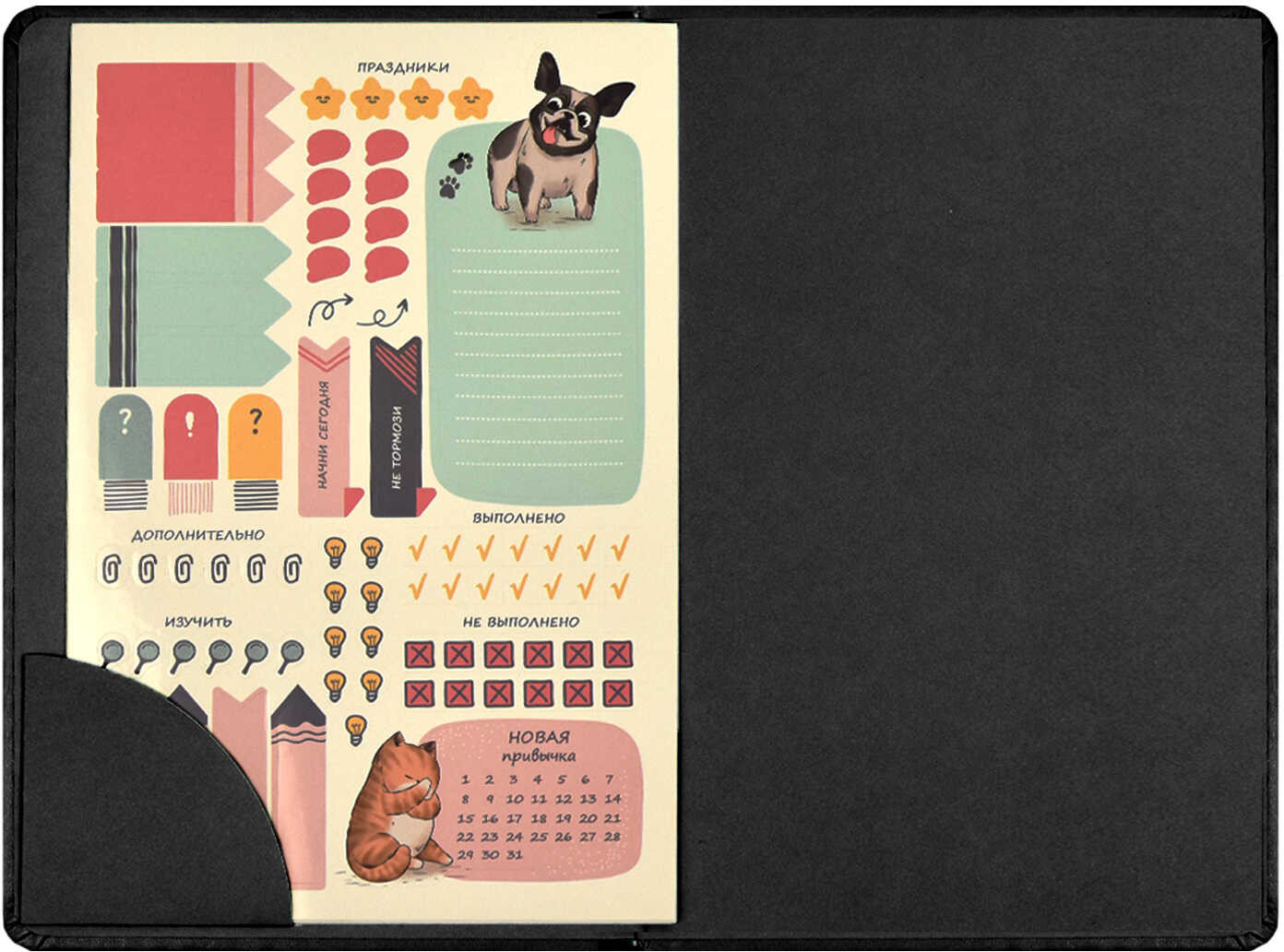 Этот планинг сочетает стильный дизайн и функциональность, идеально подходя для учебных или организационных целей. В комплекте два листа с наклейками и карман на форзаце для хранения мелочей. |