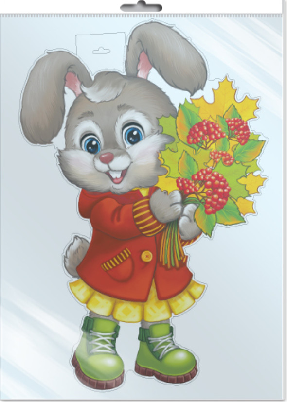 Плакат вырубной «Осенний зайчик с букетом листьев»