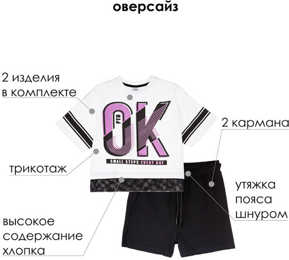 Спортивный костюм в школу для девочки подростка — необходимая составляющая для занятий физкультурой и спортом. Костюм для школьницы отлично подойдет для физкультуры как на улице, так и в зале. Трикотажный спортивный школьный костюм с высоким содержанием хлопка 95%. Благодаря наличию эластана в составе ткани костюм для школы проще в уходе и держит форму. Шорты на резинке с дополнительной утяжкой шнурком. Шорты с функциональными боковыми карманами. В сочетании с оверсайз футболкой составляют стильный полноценный комплект, мотивирующий на движение.