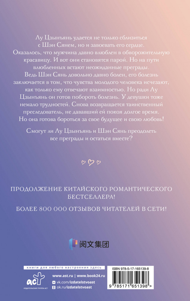 И завтра буду любить тебя. Книга 2В данный момент этот товар отсутствует в продаже. Возможно, у нас найдется аналогичный или похожий товар здесь. Серия: Like Дорама. Романтика Лу Цзинъянь удается не только сблизиться с Шэн Сянем, но и завоевать его сердце. Оказалось, что мужчина давно влюблен в обворожительную красавицу. И вот они становятся парой. Но на пути влюбленных встают неожиданные преграды. Ведь Шэн Сянь довольно давно болен, его болезнь заключается в том, что чувства молодого человека исчезают, как только ему отвечают взаимностью. Но ради Лу Цзинъянь он готов побороть болезнь. У девушки тоже немало трудностей. Снова возвращается таинственый преследователь, не дававший ей покоя долгое время. Но она готова бороться за свое будущее и свою любовь! Смогут ли Лу Цзинъянь и Шэн Сянь преодолеть все преграды и остаться вместе? |