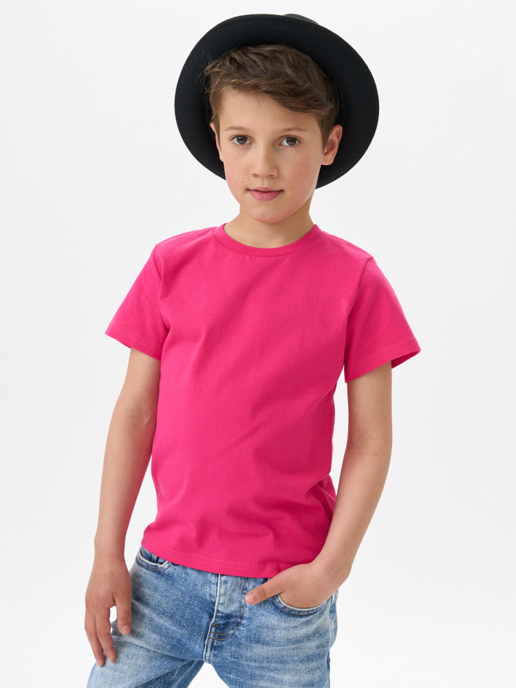 очень насыщенный розовый цвет! Красивая, соответсвует указанным параметрам. ткань мягкая, приятная телу. настоящая футболка для маленьких принцесс.