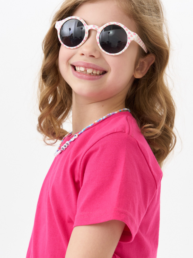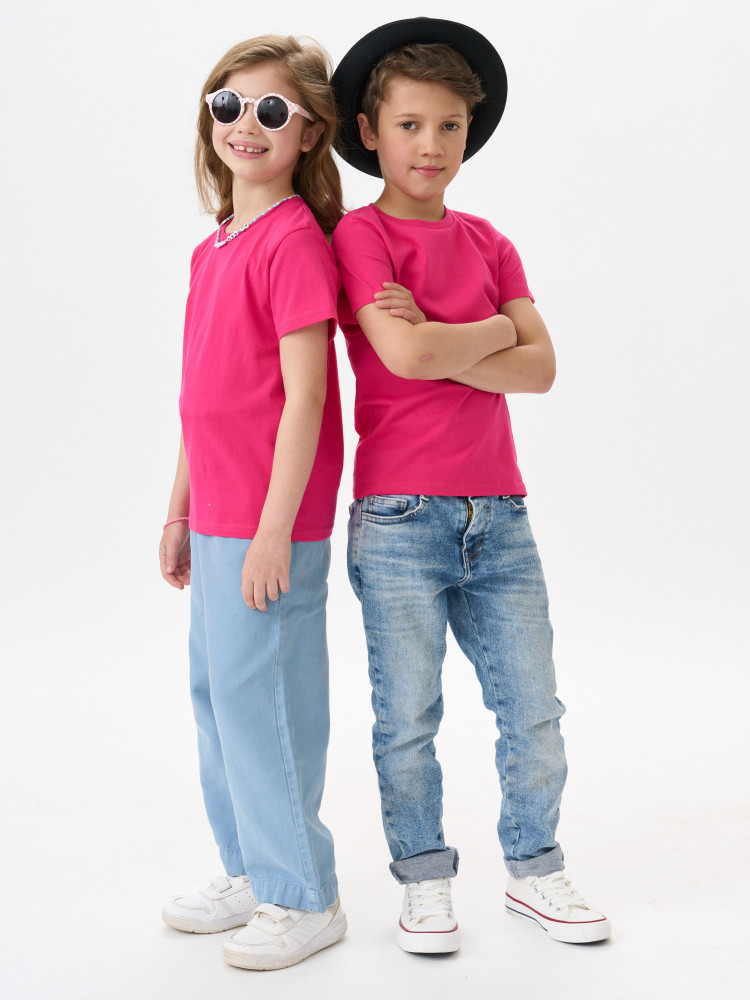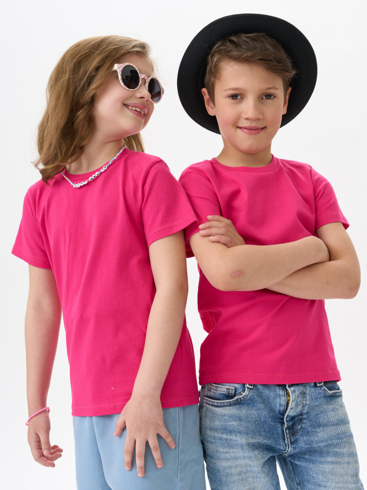 очень насыщенный розовый цвет! Красивая, соответсвует указанным параметрам. ткань мягкая, приятная телу. настоящая футболка для маленьких принцесс.