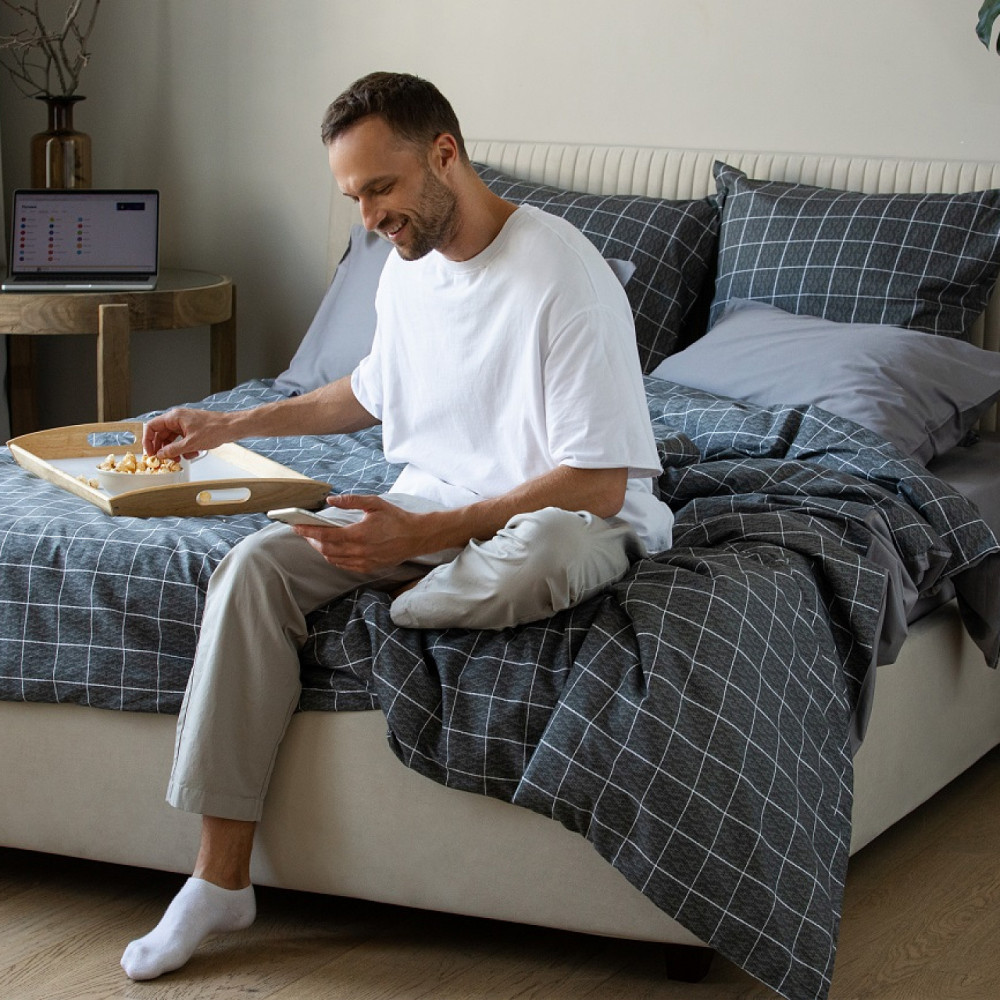 Сердцем каждой спальни является кровать. А от того, во что она одета, зависит не только образ Вашей комнаты, но и настроение, с которым Вы в ней пребываете. Наши комплекты белья из сатина коллекции «Гармоника» в разнообразной цветовой гамме добавят яркую индивидуальность Вашему интерьеру. Качество постельного белья торговой марки Ecotex обеспечивается использованием в производстве натуральных, экологичных и проверенных материалов, современного оборудования, внедрением новых технологий и высокой квалификацией сотрудников со значительным опытом работы. На каждом этапе производственного цикла по пошиву комплектов белья из 100% хлопка установлен строгий контроль качества. Двухсторонний пододеяльник дает возможность использовать разные цветовые комбинации набивных рисунков, а вшивная молния значительно облегчит заправку одеяла. В сатине высокой плотности нити очень сильно скручены, поэтому ткань гладкая и немного блестит. Комплект из плотного сатина прослужит дольше любого другого хлопкового белья, а благодаря диагональному переплетению нитей он почти не мнется.