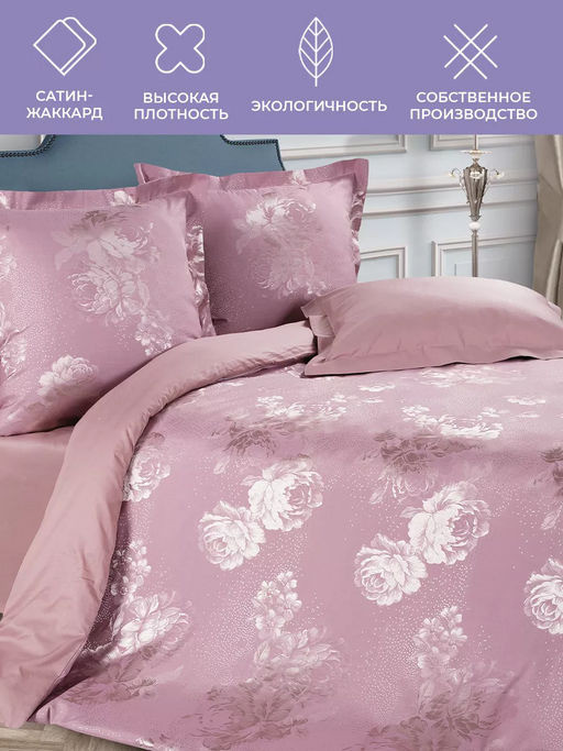 Наволочки комплекта украшены широкими декоративными воланами — «ушками», в пододеяльник вшита молния, это значительно облегчает заправку одеяла. Постельное белье изготовлено из гладкого шелковистого хлопка-сатина высокой плотности, это очень красивый и прочный материал. Ткань с сатиновым плетением не деформируется и не дает усадки, цвета этого постельного белья не поблекнут после многократных стирок. Постельное белье «Эстетика» разнообразных оттенков идеально подходит для любого интерьерного стиля: как классической, традиционной обстановки, так и современного городского дизайна. Комплект изготовлен из лучших сортов хлопка. Необыкновенная мягкость сатина — результат специальной обработки ткани. Изысканный дизайн, гармоничное сочетание жаккарда и гладкого сатина производят впечатление и рождают особенные эмоции, как и любая истинная красота.