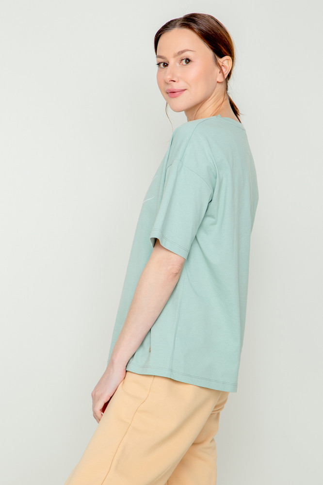 Свободная футболка из 100% натурального хлопка с лаконичным принтом из однотонного трикотажа супрем. Короткие рукава со спущенной линией плеча создают объём и свободный силуэт. Гладкий материал приятен к телу, не теряет форму и позволяет коже дышать. Все трикотажные полотна производятся в соответствии с нормами Швейцарского сертификата ЭкоТекс.
