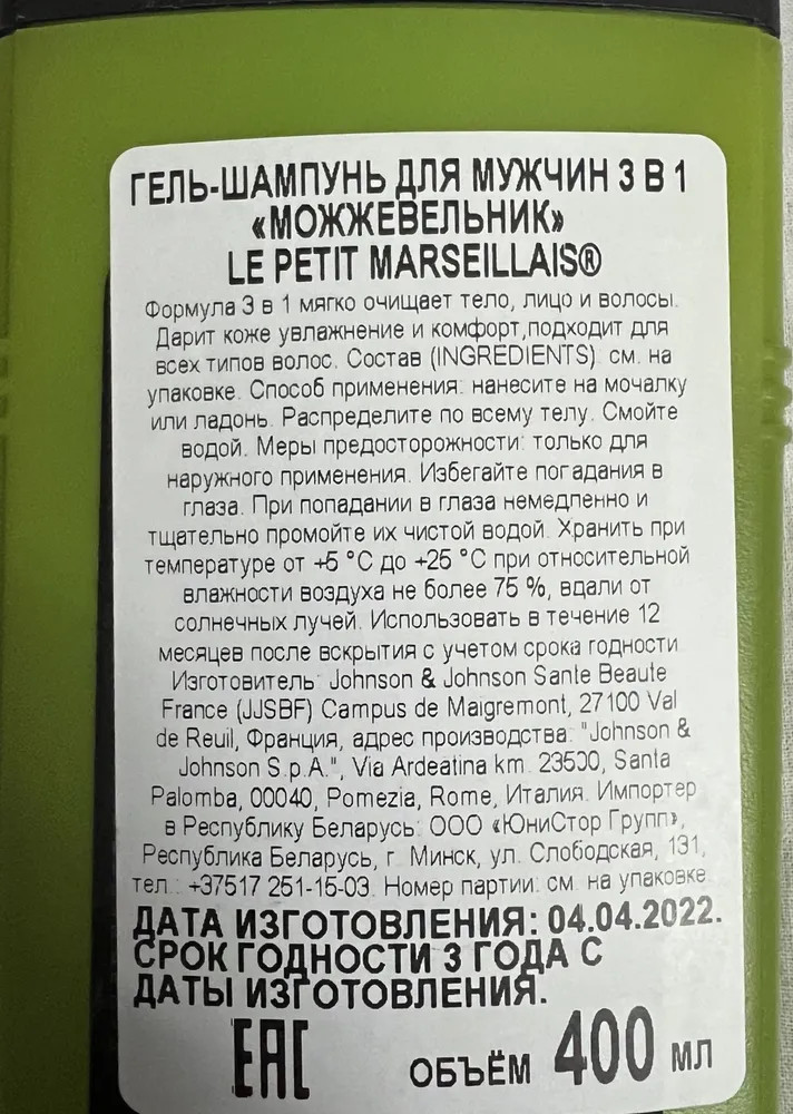 Le Petit Marseillais Гель-шампунь для мужчин «Ardic Agaci ve Fujer»