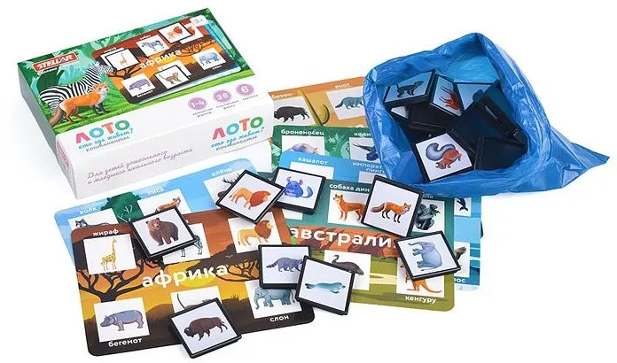 Stellar Лото «Кто где живет. Континенты»В данный момент этот товар отсутствует в продаже. Возможно, у нас найдется аналогичный или похожий товар здесь. Лото — традиционная настольная игра, которая способна увлечь всю семью. А тематическое лото — это еще и хороший способ передать ребенку знания через игру. Лото «Кто где живет. Континенты» закрепляет представления малыша о живой природе живущих на разных континентах. Играя в лото, дети учатся одновременно следить за ходом игры и удерживать в уме изображение своей карточки. Это очень важный навык для будущих школьников. |