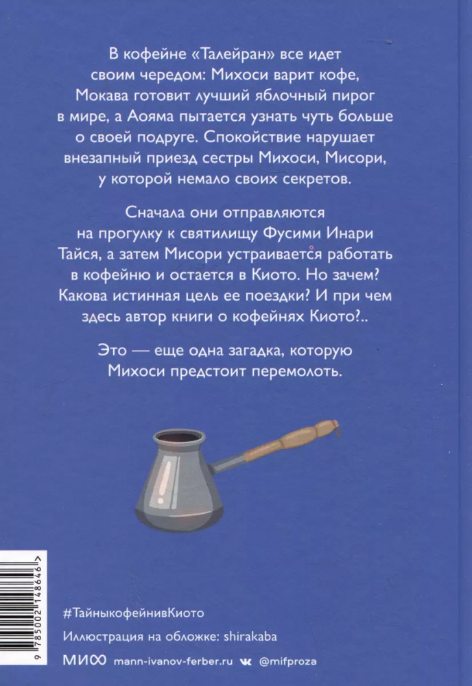 💳 Оплатить за товар можно при получении 🇰🇿 Есть бесплатная доставка по Казахстану 🎁 Копите бонусы с каждой покупки Серия: Тайны кофейни в Киото В кофейне «Талейран» все идет своим чередом: Михоси варит кофе, Мокава готовит лучший яблочный пирог в мире, а Аояма пытается узнать чуть больше о своей подруге. Спокойствие нарушает внезапный приезд сестры Михоси, Мисори, у которой немало своих секретов. |