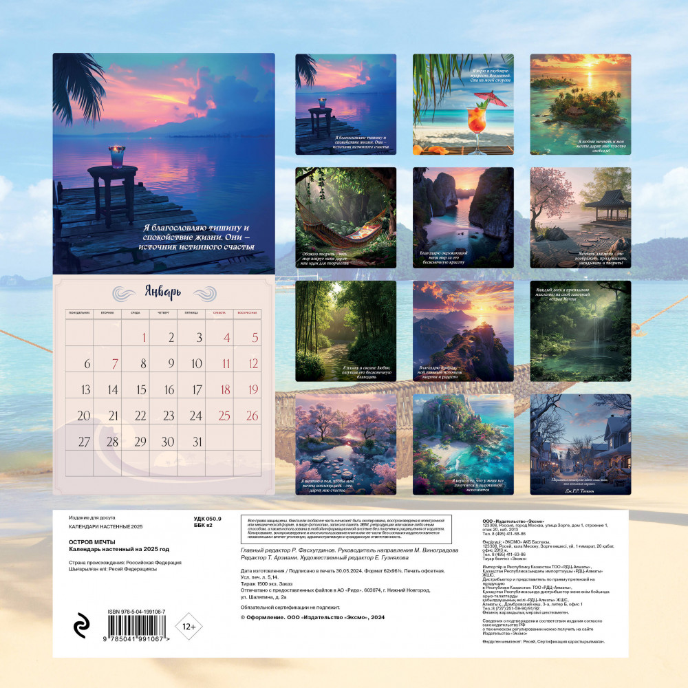 Календарь настенный на 2025 год «Остров мечты»В данный момент этот товар отсутствует в продаже. Возможно, у нас найдется аналогичный или похожий товар здесь. Серия: Календари настенные 2025 (300×300) А вы хотите побывать на острове своей мечты?! Этот яркий настенный календарь — специально для вас. В нем — волшебные острова счастья и аффирмации на удачу, чтобы сбывались все ваши желания. Вперед, за мечтой! Пусть в 2025 году ваш желанный остров будет с вами каждый день. И не уставайте повторять себе: «Каждый день я приплываю мысленно на свой заветный остров Мечты!» |