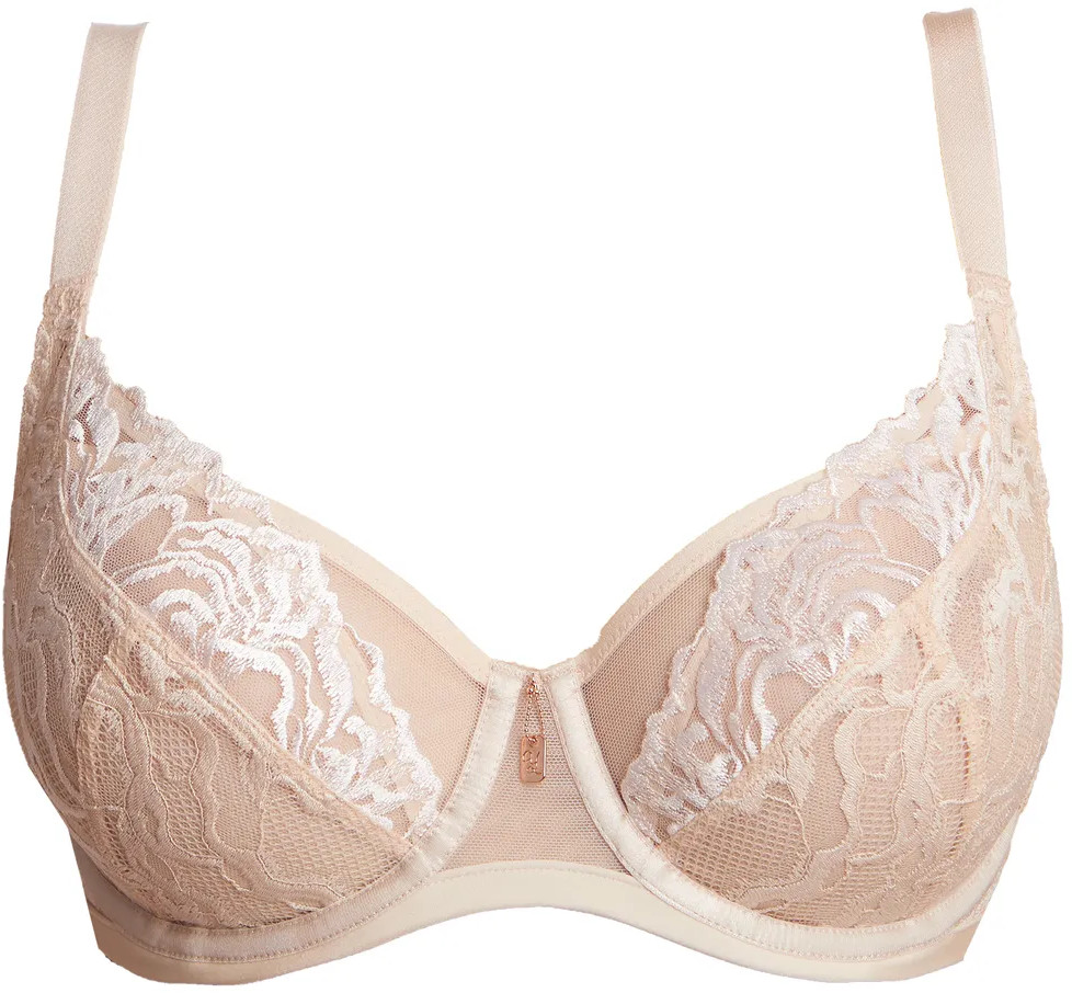 Бюстгальтер с мягкими чашками, с тройным диагональным членением коллекции Only you. Гармоничное сочетание уникальной, специально созданной вышивки в виде волн, в технике каландрирования. Эффектное кружево в виде пены, пронзительно подчеркнуто широкой тесьмой с прозрачными зонами.