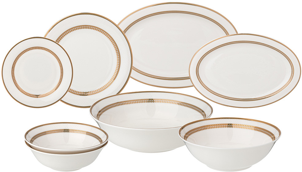 Серия: Сервизы подарочные Набор посуды столовой «Праздничный» для торжественных застолий и семейных обедов. Изысканный фарфор Bone Pocelain с эффектом костяного фарфора, тонкий и полупрозрачный, прочный и никогда не темнеет. Утонченный кружевной рельефный орнамент выглядит объемным и привлекательным благодаря различной обработке выпуклых и базовых поверхностей. Изящная золотая обводка придает блеск и торжественность. Эта посуда замечательный подарок к любому торжеству, она наверняка пригодится каждой семье, запомнится навсегда и прослужит долгие годы. |