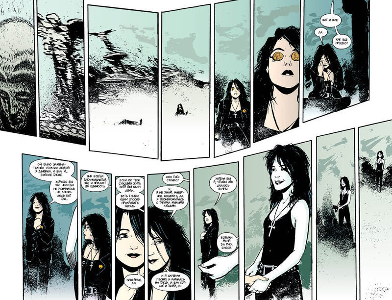 Очень мило, если Смерть личность, а не просто страшное неведомо что из темноты и боли. Нил Гейман отлично проецировал смерть в виде милой, забавной и красивой девушки! Отличные истории и приключения девушки с котелком, облаченная в черные джинсы с топом, и красивым кулоном анкхом. Книга очень качественная, яркая, насыщенная. Издание порадовала. Спасибо Flipy за книгу:)