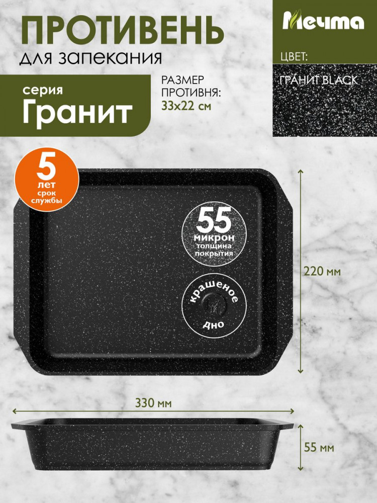 Серия: Гранит Black Противень из литого толстостенного алюминия «Мечта» станет незаменимым инструментом и надежным помощником на вашей кухне. Отлично подойдет для приготовления разнообразных блюд из мяса, рыбы и овощей. Благодаря термоаккумулирующим свойствам алюминия пища не пригорает, а томится. Новейшая формула сверхпрочного антипригарного покрытия позволяет готовить при минимальном количестве масла, не переживая о том, что пища может пригореть. С посудой ТМ «Мечта» можно жарить, тушить и варить без потерь вкусовых и полезных качеств продуктов. |