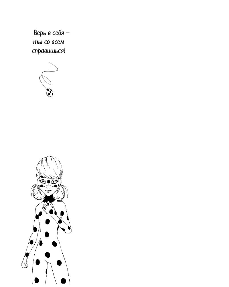 Экспериментируй и вдохновляйся в компании супергероев! Пока Леди Баг и Супер Кот на страже, а в городе нет злодеев, у тебя есть время окунуться в творчество. С вдохновением тебе помогут мотивирующие фразы и любимые персонажи.